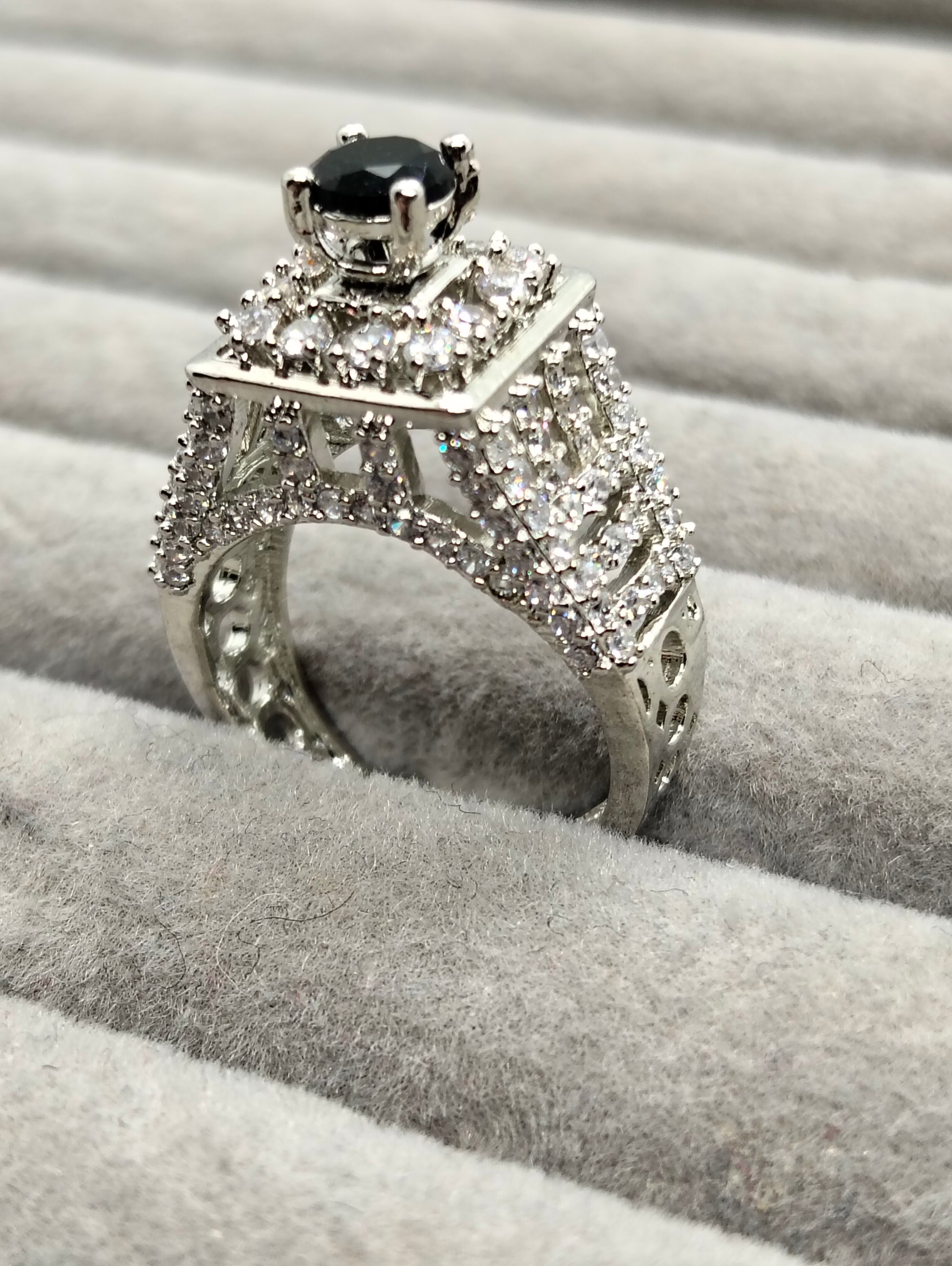 Crafted with precision, this Black Stone Adjustable Tower Ring boasts a one carat black stone set within a silver rhodium plated band. With its customizable fit, this ring is the perfect blend of elegance and versatility. Elevate any outfit with this stunning addition to your collection.