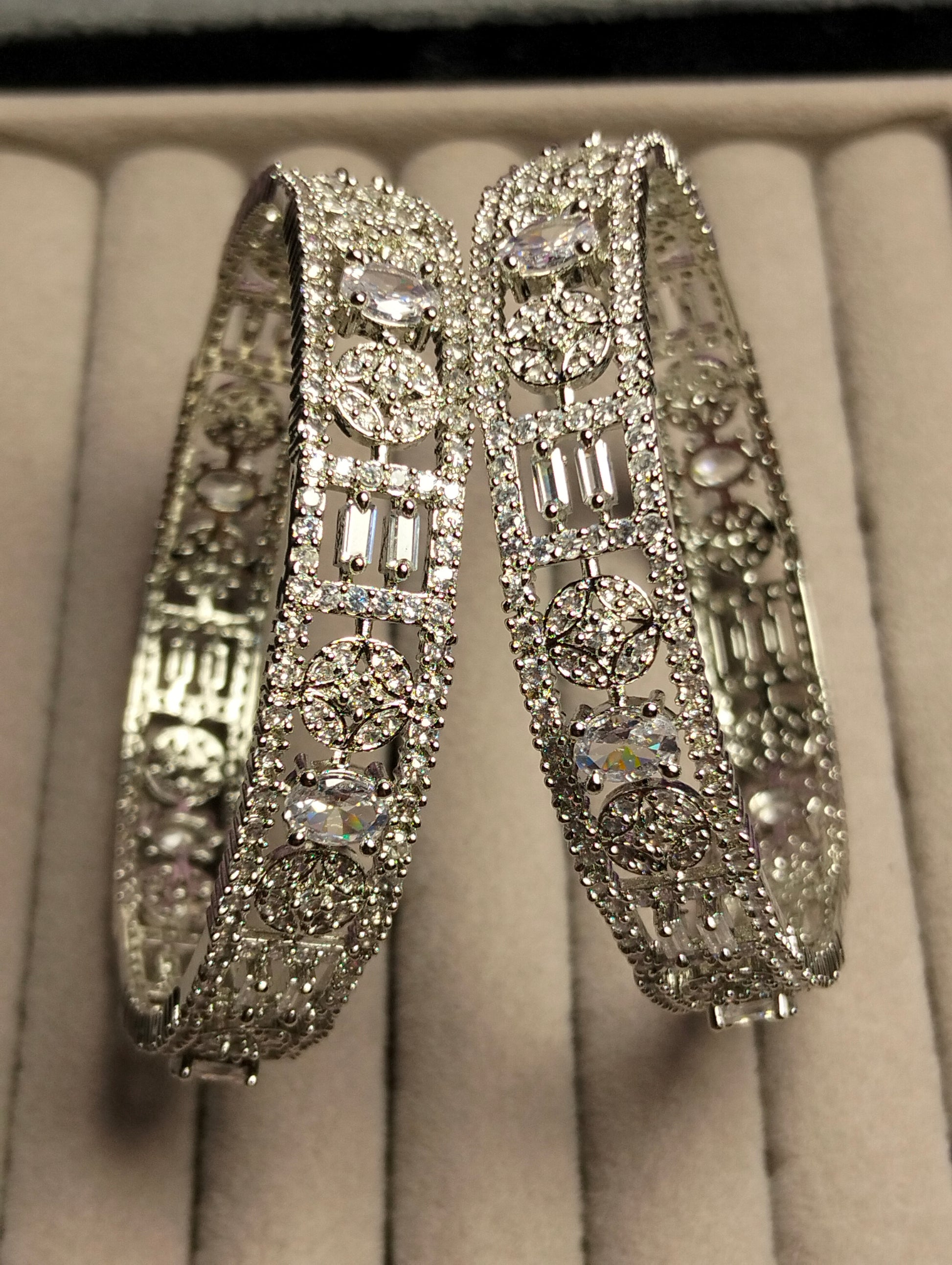 Designer one Carat Semi-Precious Stone Bangle – Rhodium Plated Silver