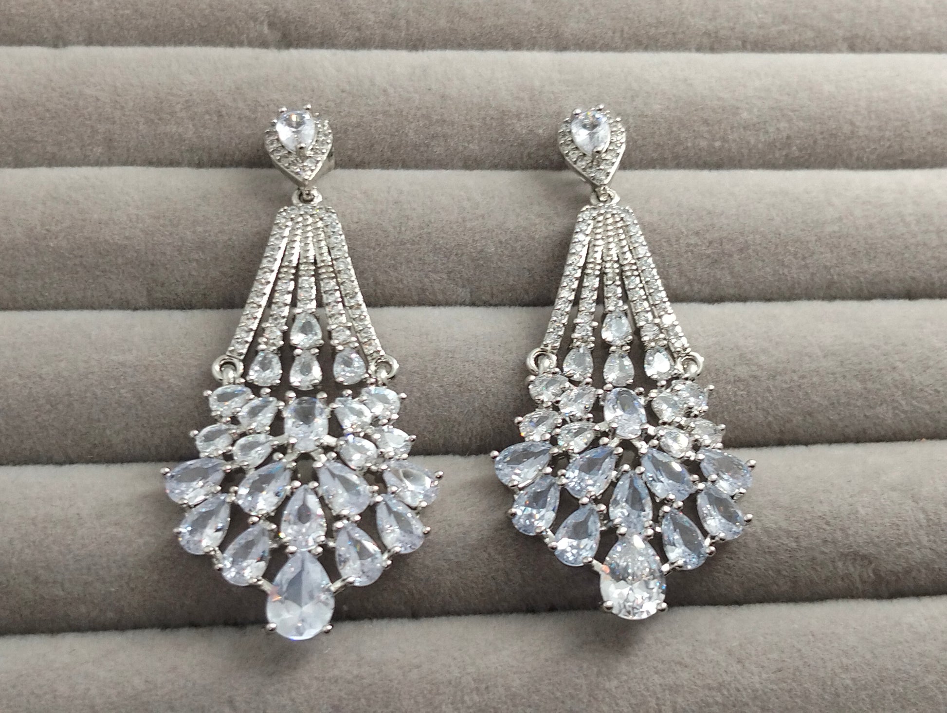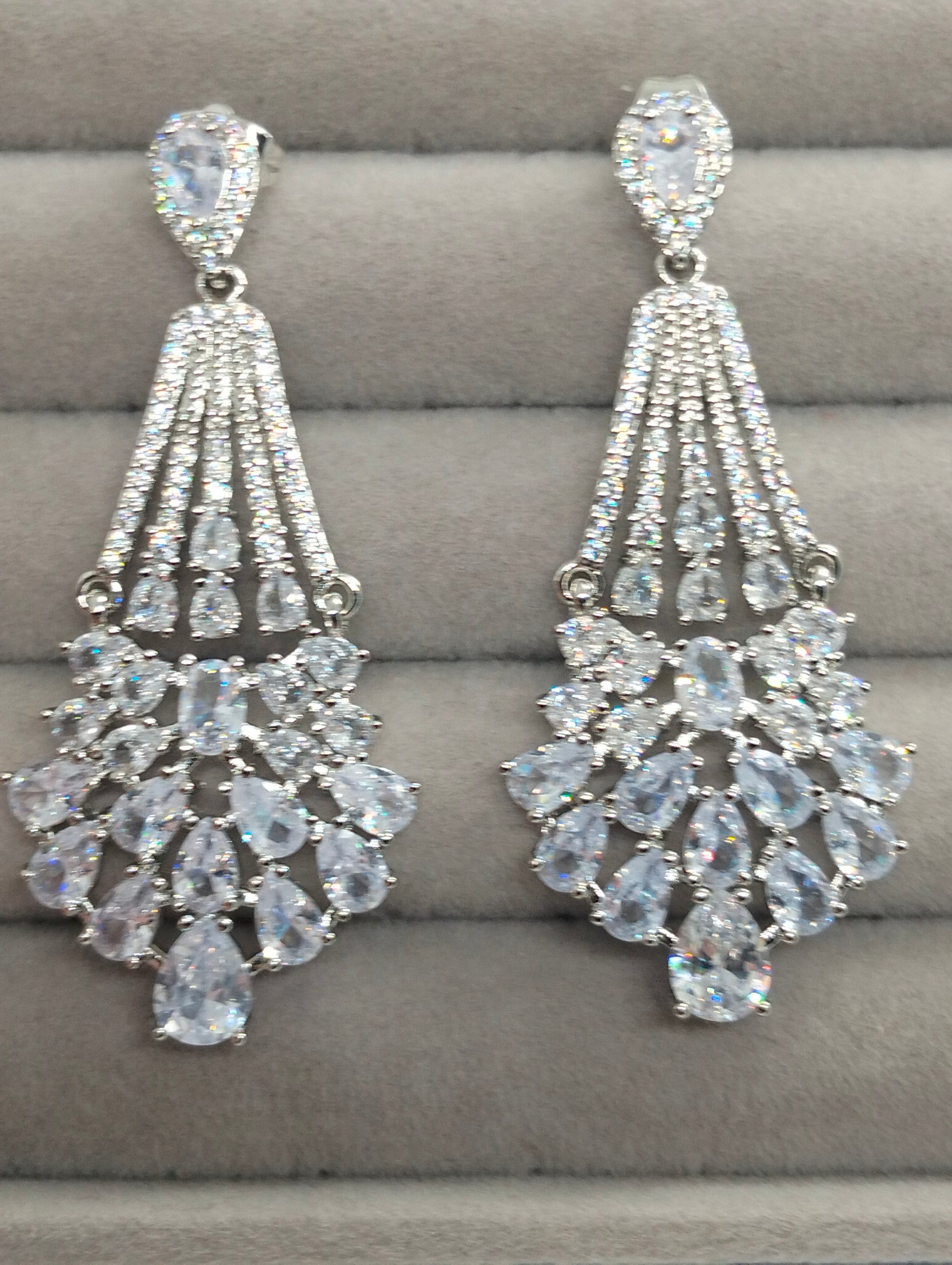 These stunning earrings feature a diamond-like shine, thanks to their silver rhodium plating. Crafted with precision and elegance, they add a touch of sophistication to any outfit. Elevate your style with these beautiful earrings that mimic the brilliance of real diamonds.