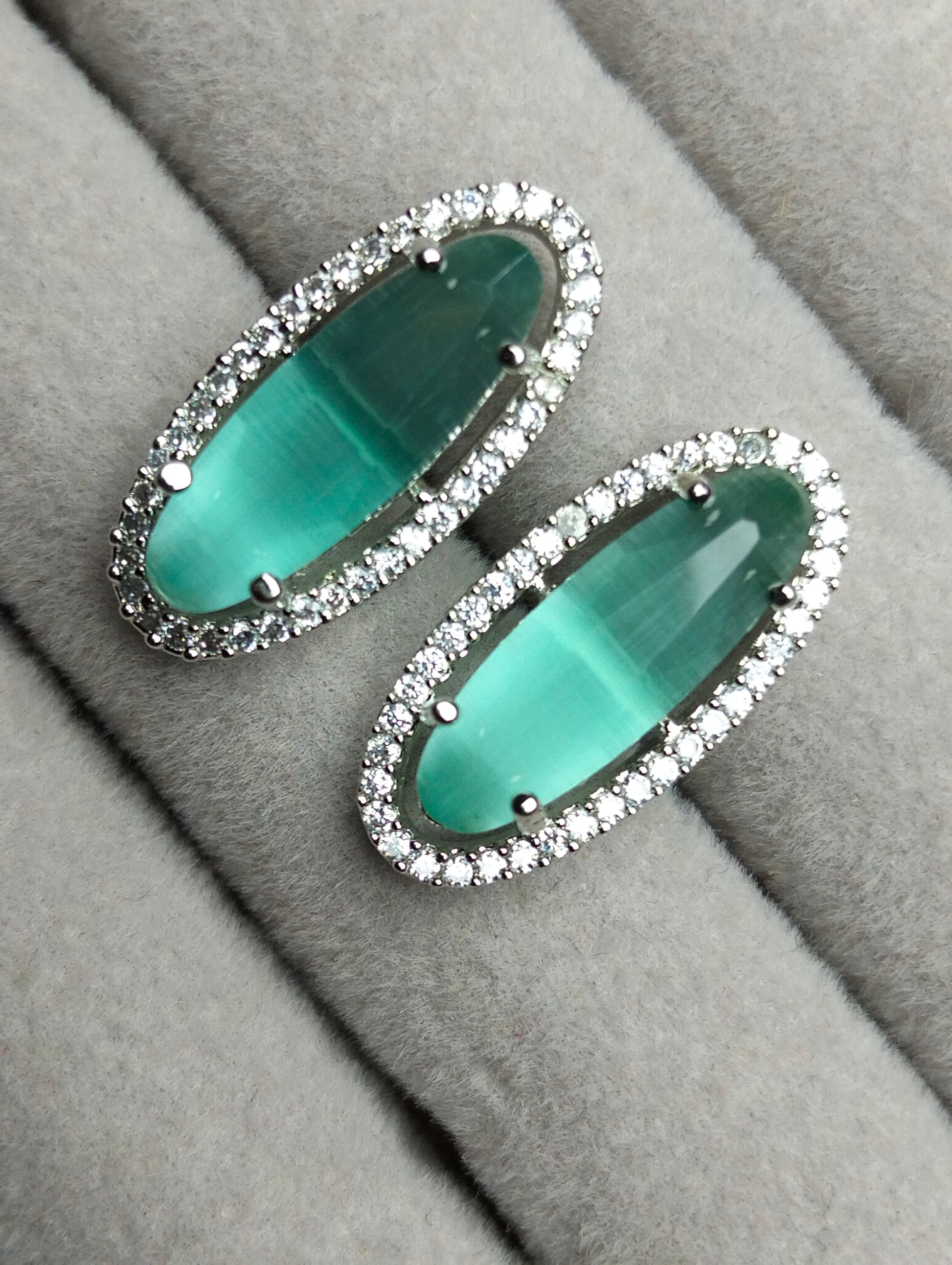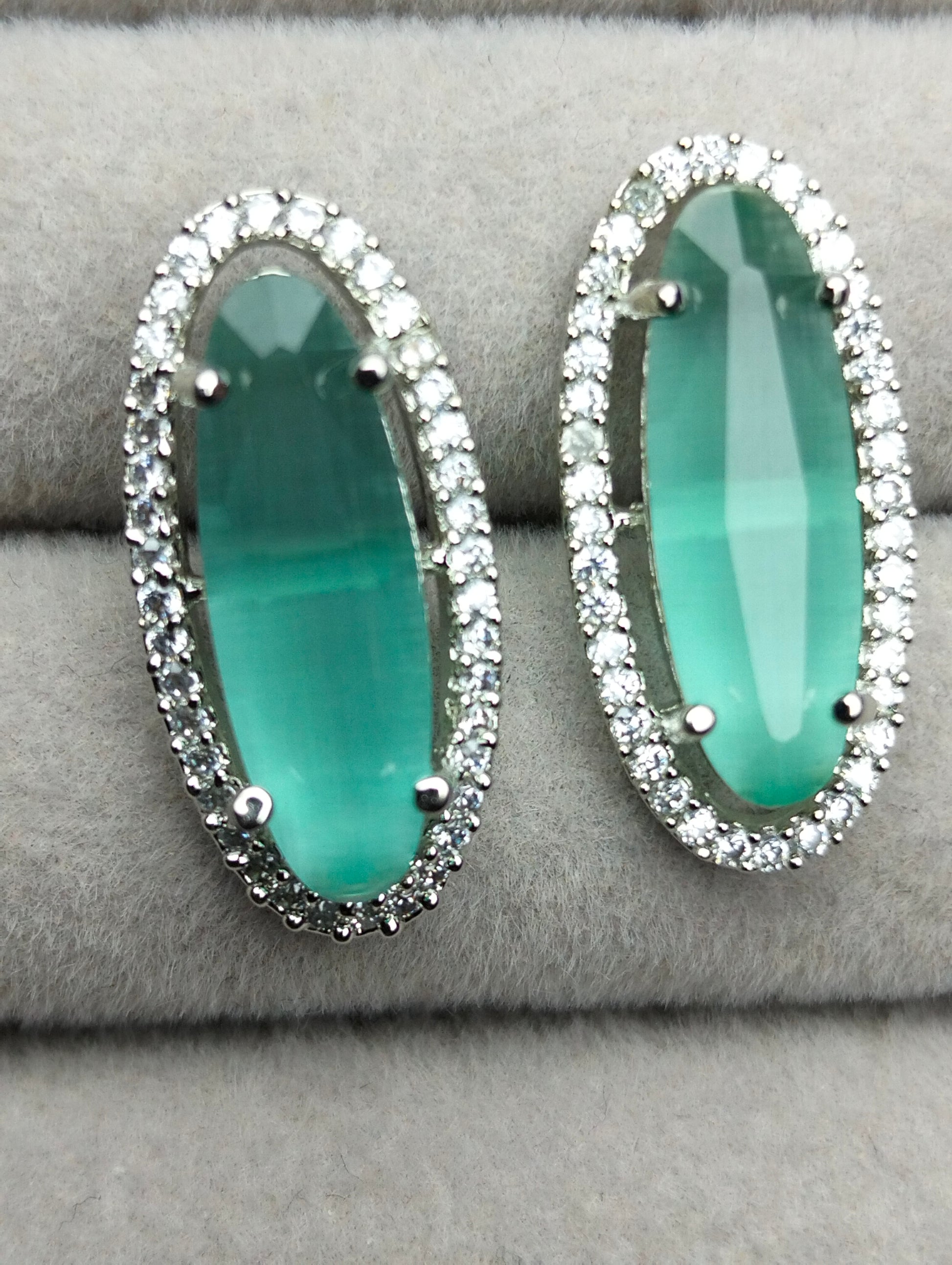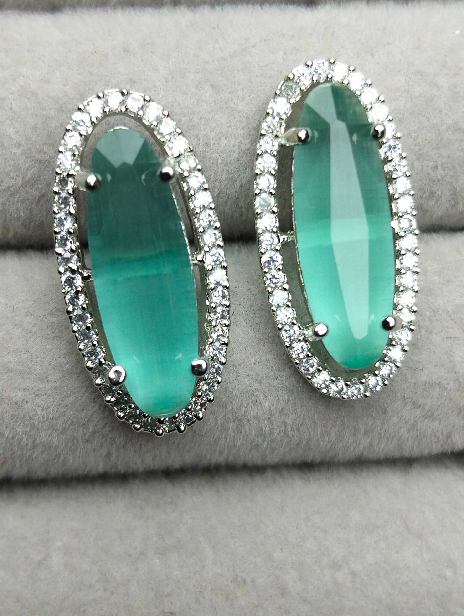 Elegant mint green studs crafted with premium silver and finished with rhodium plating for lasting brilliance. These delicate earrings feature a soft, sophisticated hue that complements any complexion and pairs effortlessly with both casual and formal wear. The rhodium coating ensures durability and maintains the silver's lustrous shine, resisting tarnish over time. Perfect for everyday elegance or as a thoughtful gift for someone special.