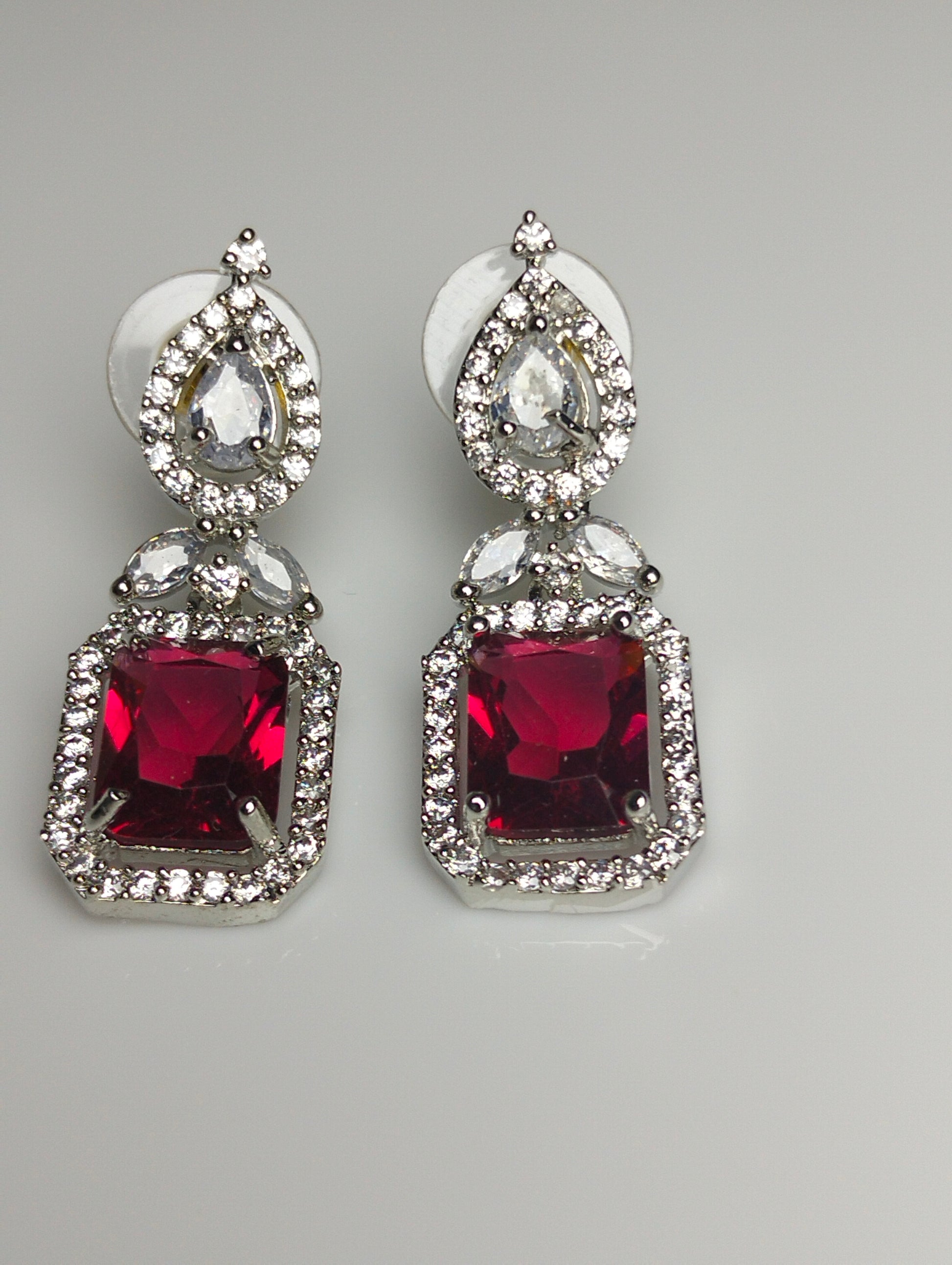 Premium Rhodium Plated Silver Red Gemstone Stud Earrings