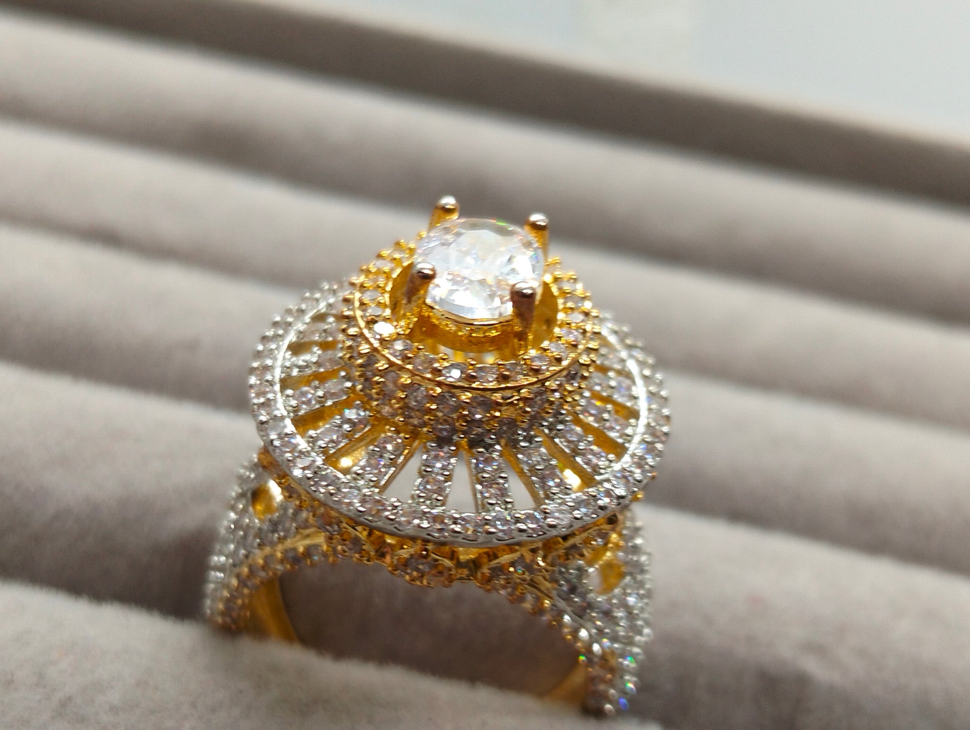 This statement ring features a stunning one carat tower design and is adorned with semi-precious stones. Its adjustable size ensures a perfect fit for all. Add a touch of elegance and luxury to any outfit with this beautiful ring.