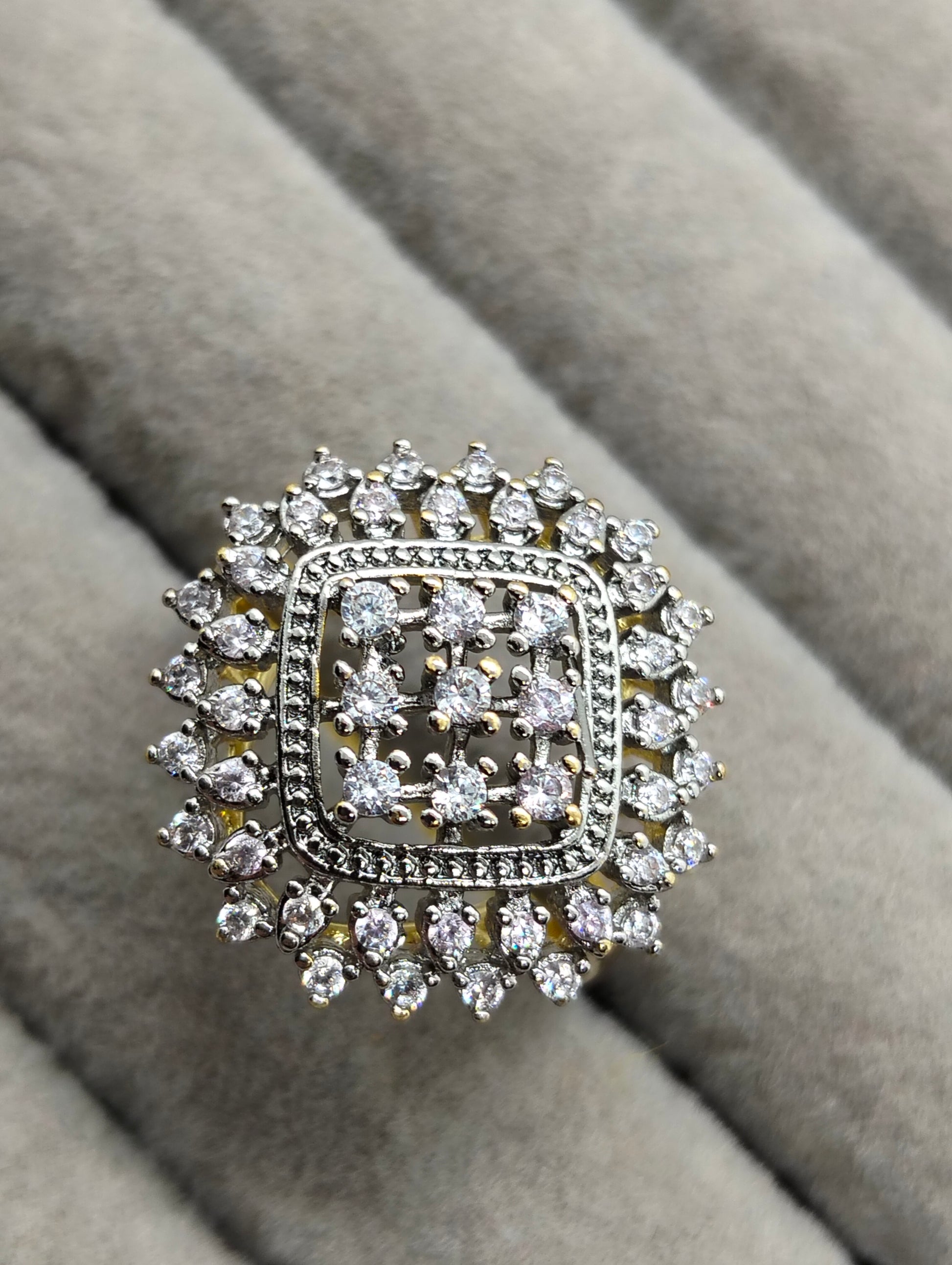 Trendy Squarical 18k gold polished ring with cubic zircon