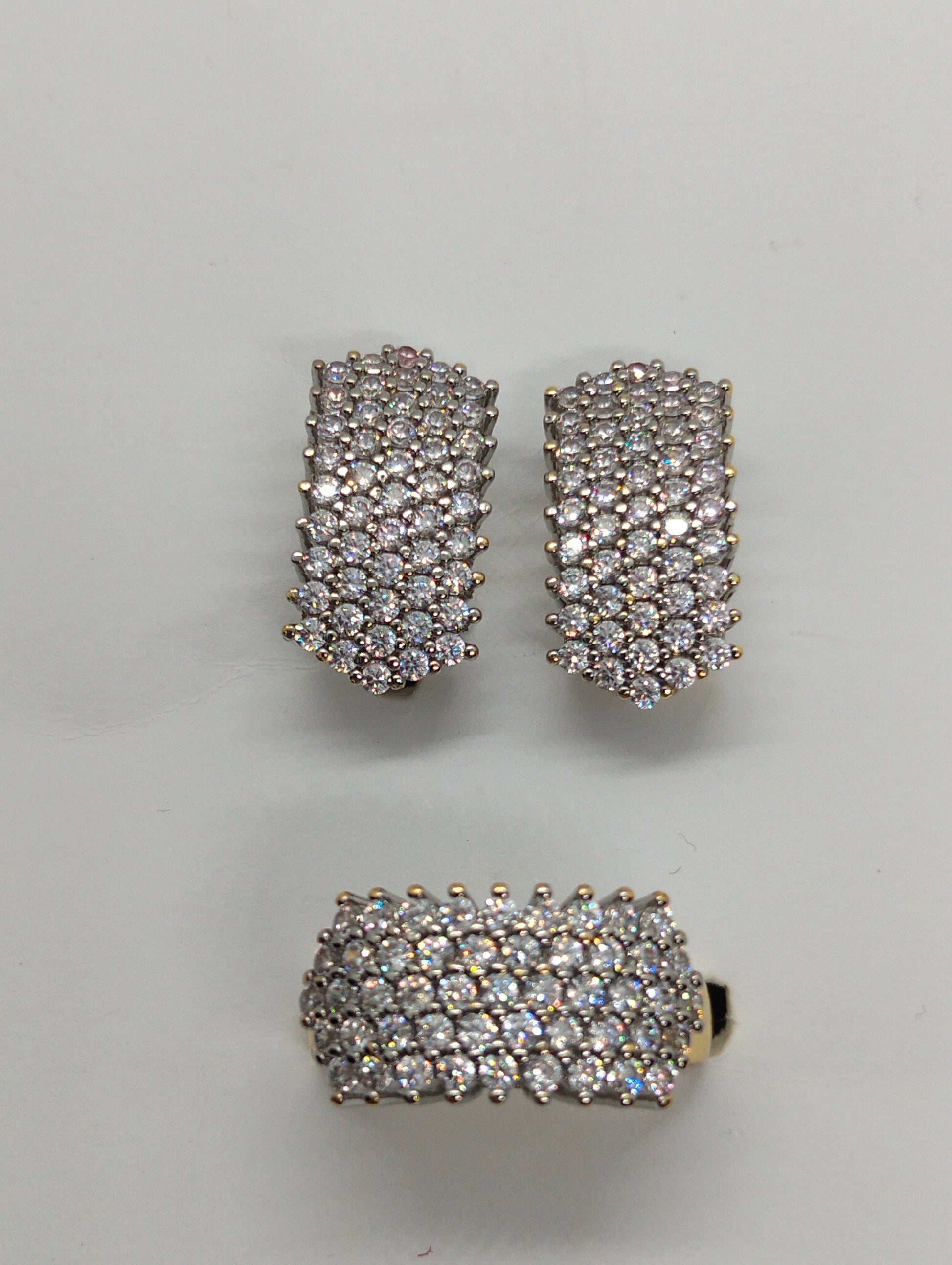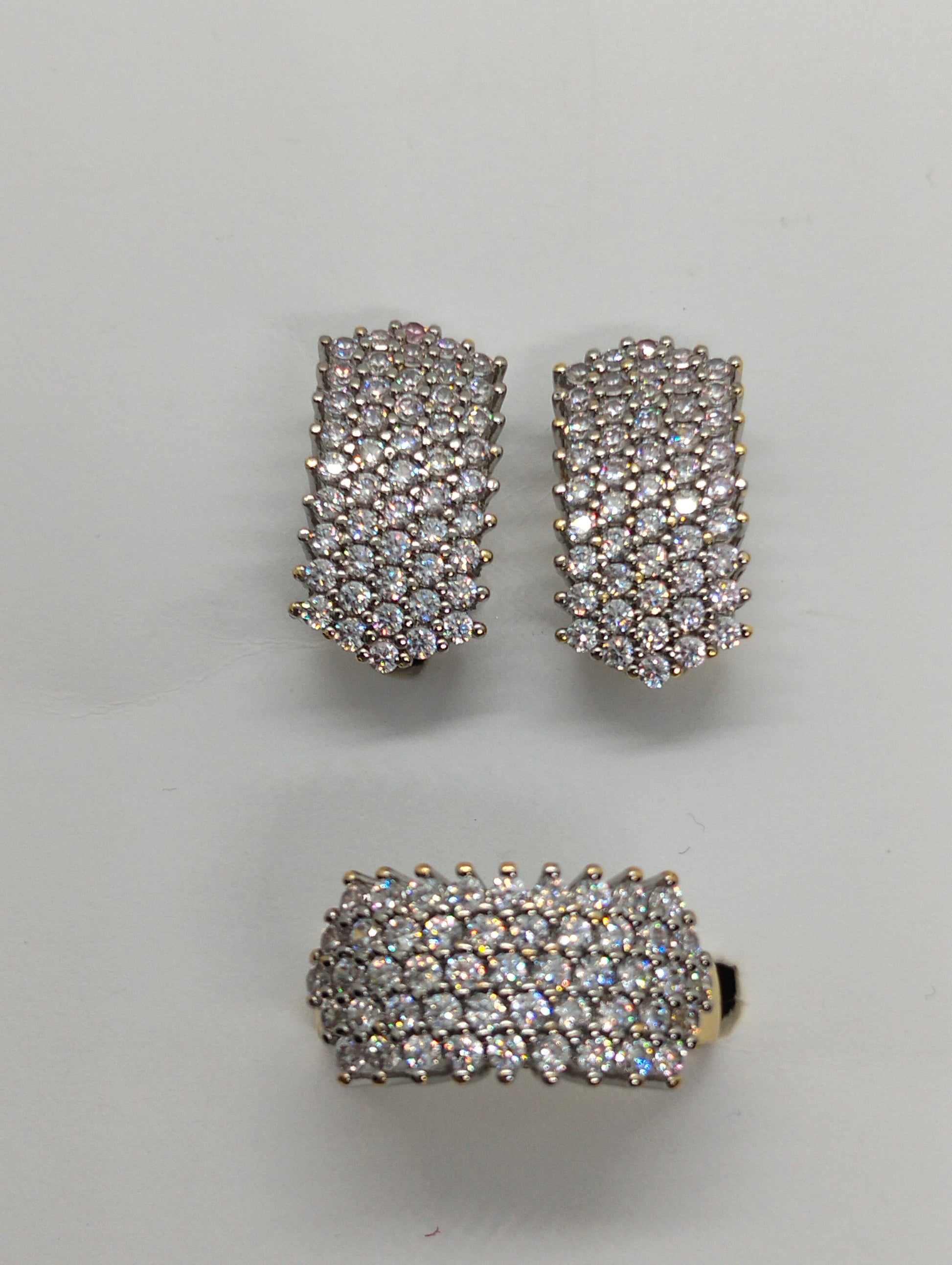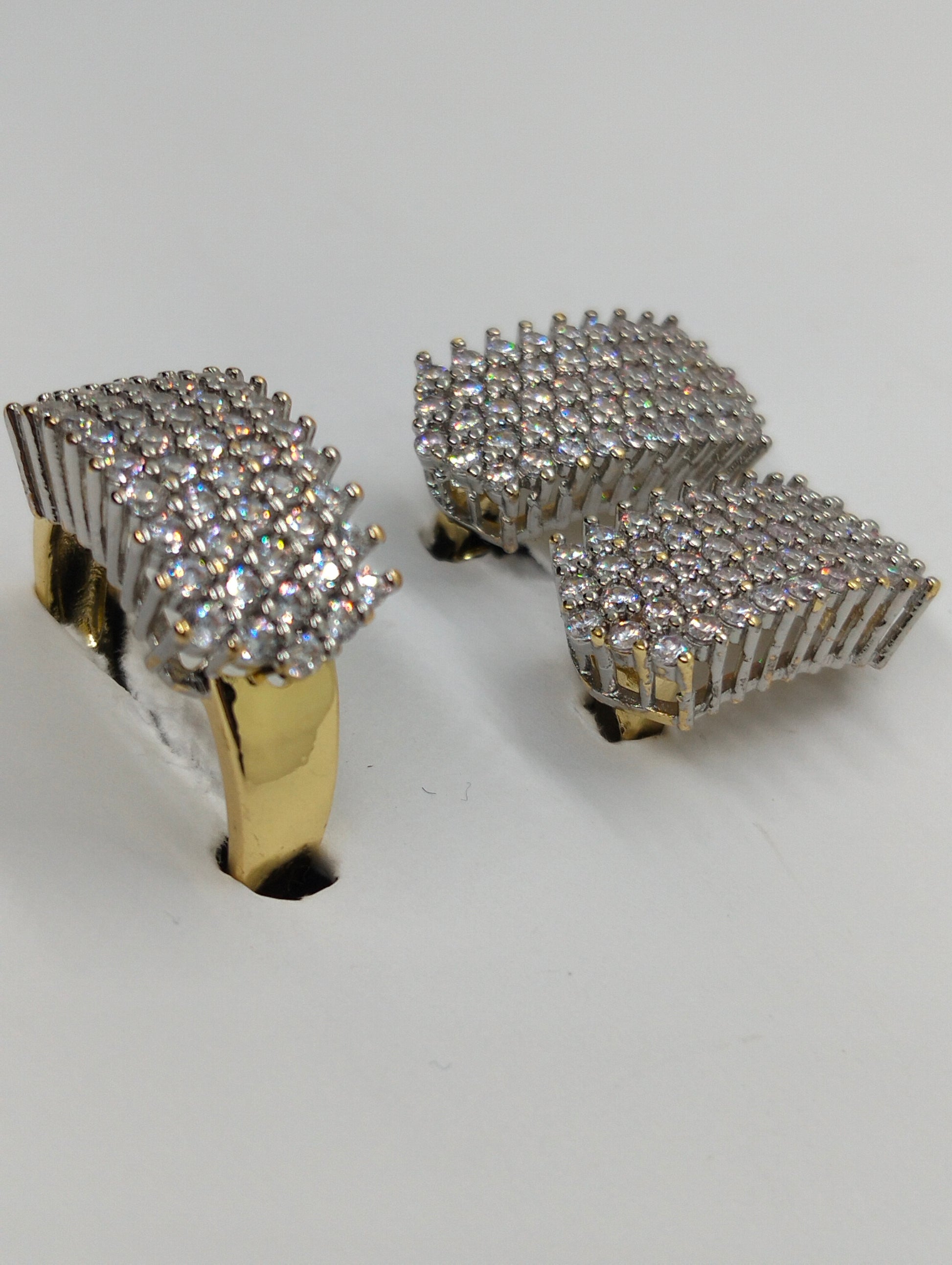 Crafted with 18k gold polish, this two toned ring earrings set boasts stunning elegance. Adorned with sparkling cubic zircon, these earrings add a touch of sophistication to any outfit. Make a statement with these timeless and versatile pieces.