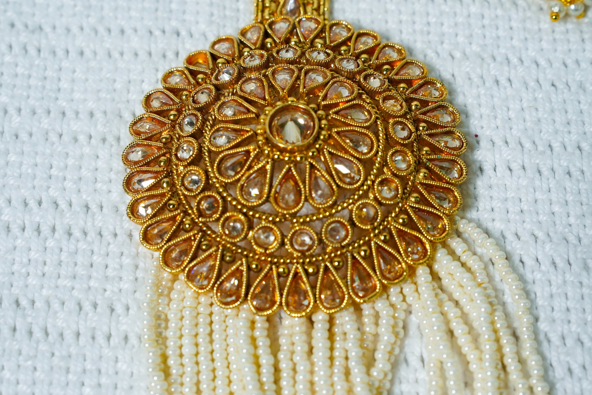 The Indian Traditional Long Mala Set with pearls is an exquisite and ornate jewelry ensemble that captures the essence of asian's rich cultural heritage.This set typically consists of a long necklace , known as 'MALA' adorned with intricate designs for wedding wear :>