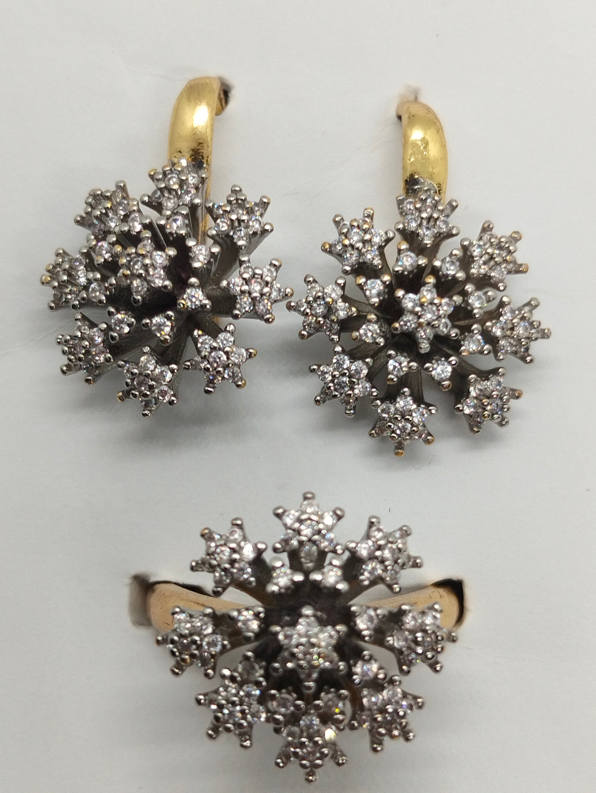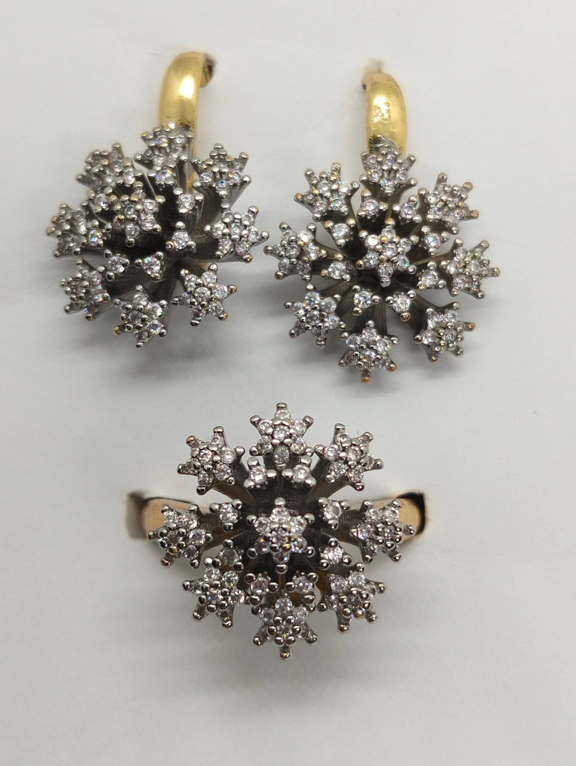 Expertly crafted with 18k gold plating and stunning cubic zircon, this ring and earrings set adds a touch of elegance to any ensemble. The perfect finishing touch for any formal occasion.